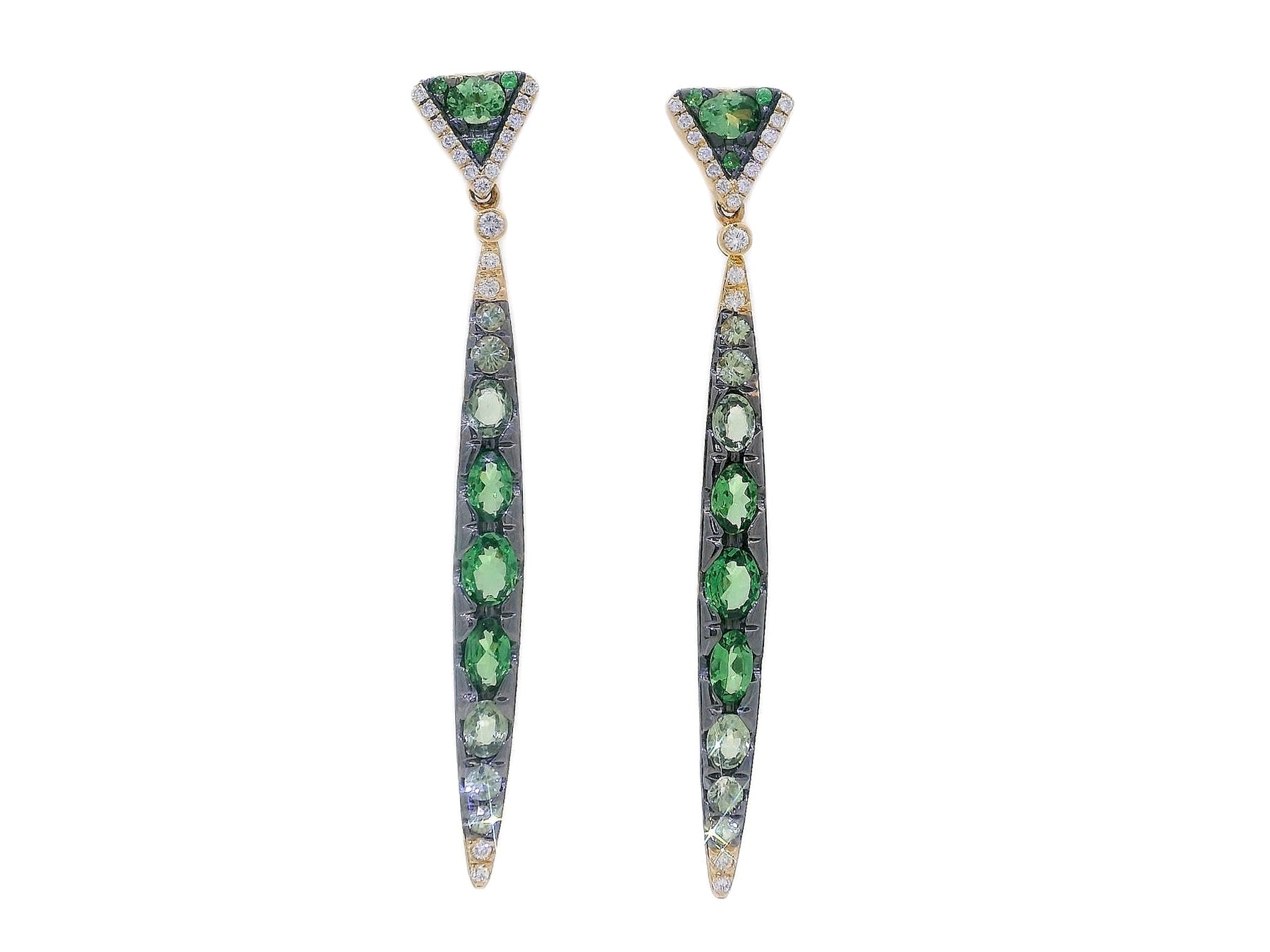 5.39 CTW Natural Green Garnet & Diamond Gradient Dangle Earrings in 18KT Yellow Gold