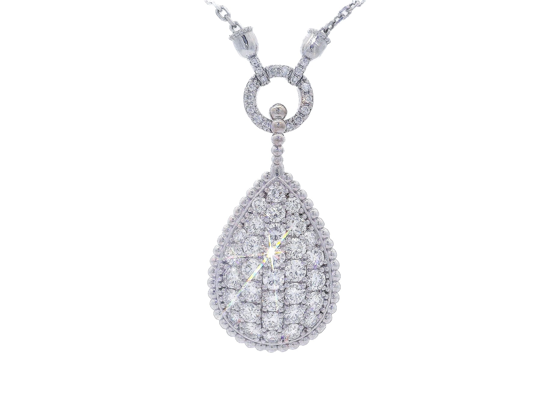3.50 CTW Pear-Shaped Colorless Flawless Diamond Cluster Pendant Necklace in 14KT White Gold