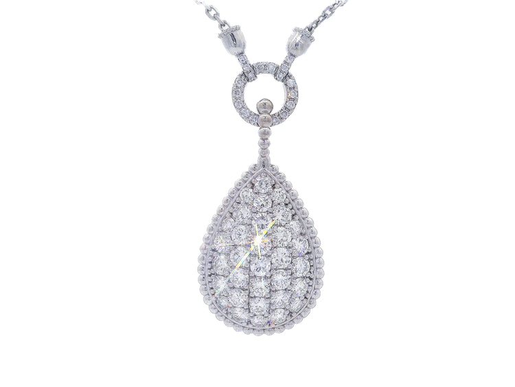 This stunning diamond pendant necklace features a beautifully crafted teardrop design, adorned with sparkling diamonds that catch the light from every angle. Perfect for special occasions or as a luxurious everyday accessory, this piece adds a touch of elegance to any outfit.