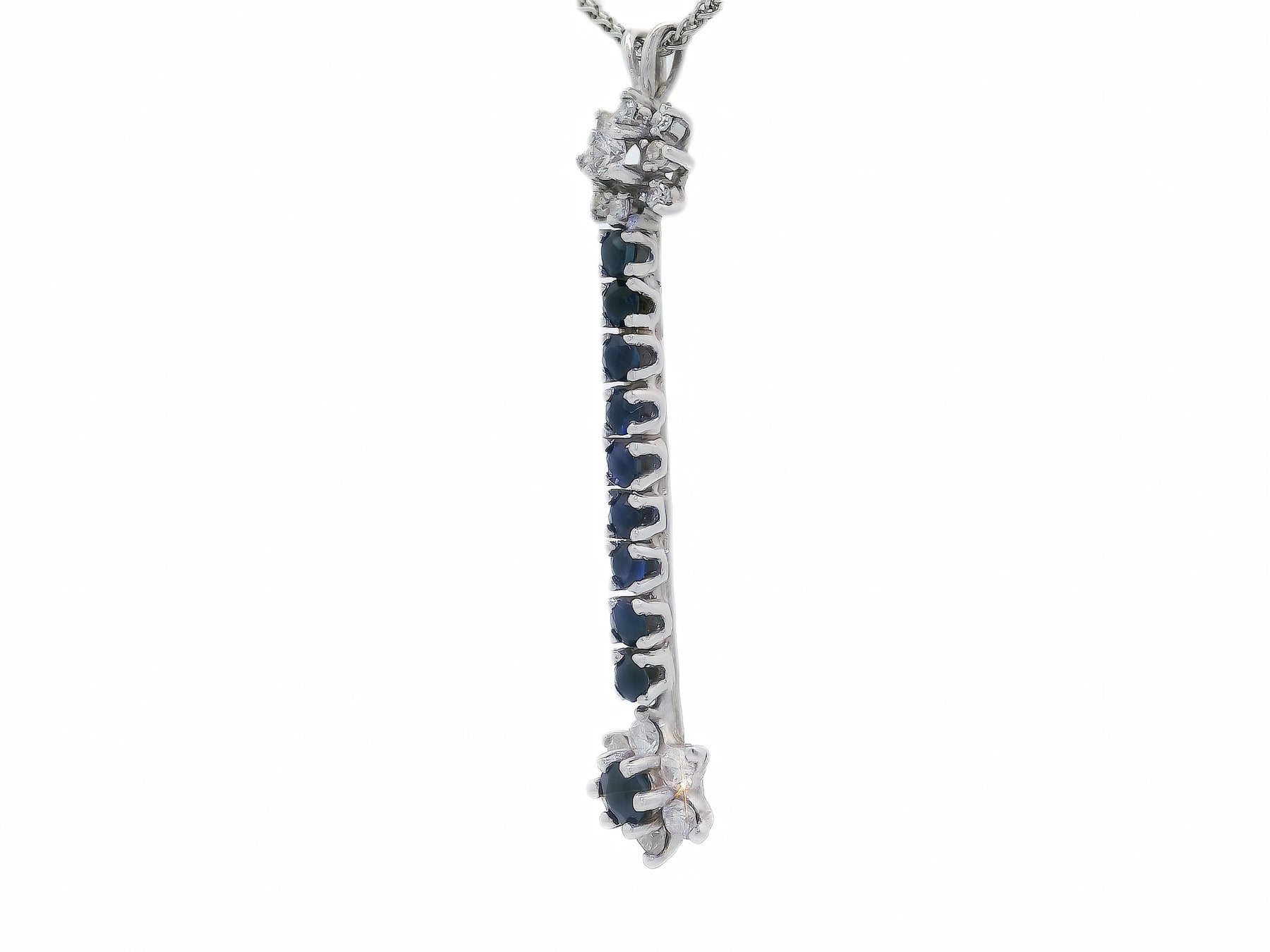 AAA Grade Natural Sapphire & Diamond Star Pendant Necklace in 14KT White Gold