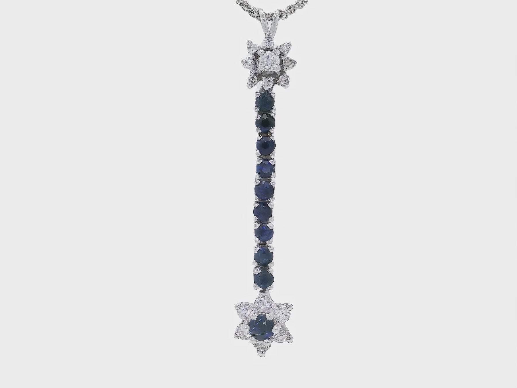 This stunning pendant features a captivating arrangement of deep blue sapphires and sparkling diamonds, creating a luxurious statement piece. The intricate design showcases a beautiful star motif, making it perfect for both formal occasions and everyday elegance.