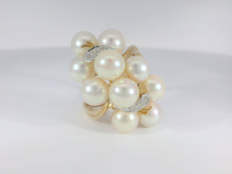 Pearl & Diamond Cluster Ring in 14KT Rose Gold