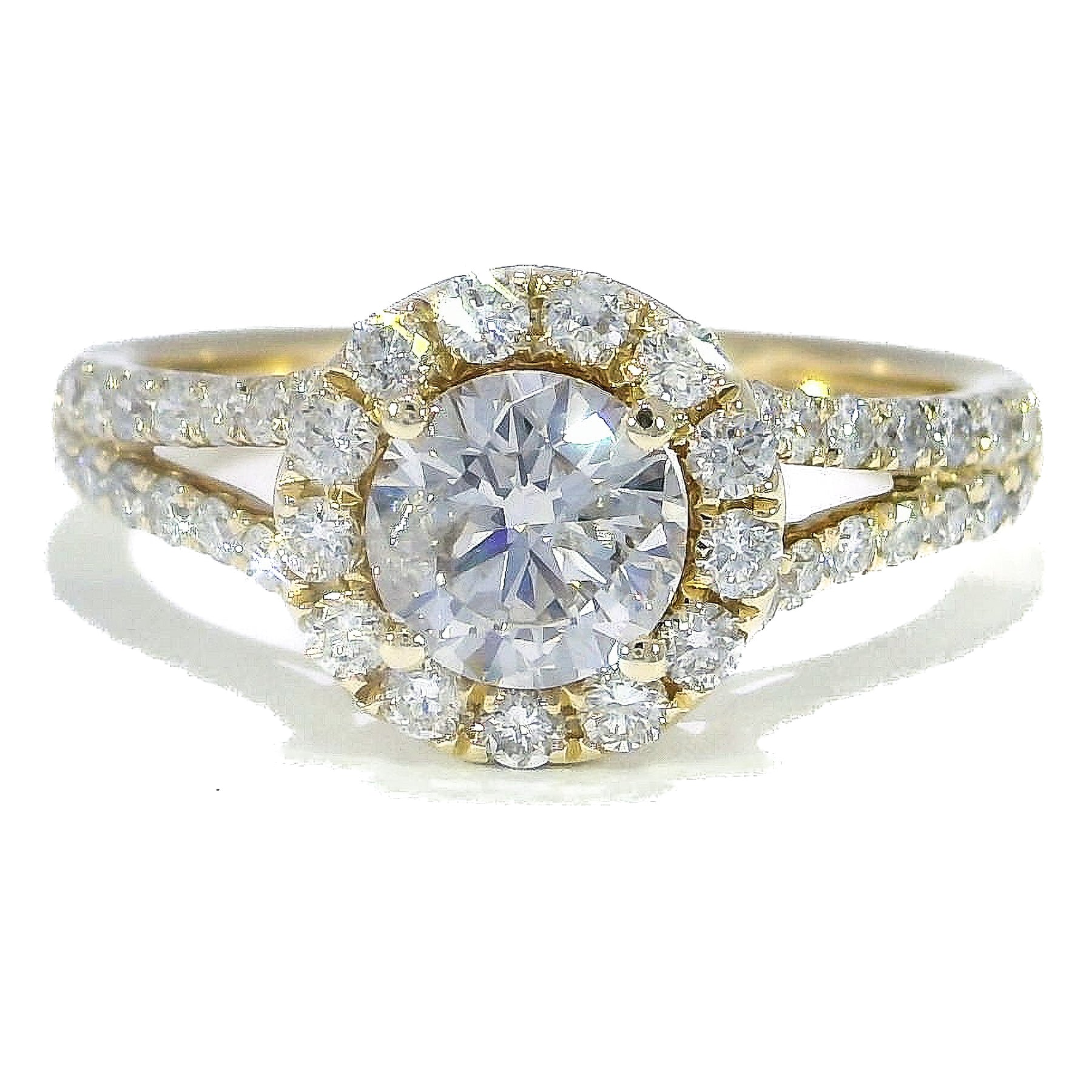 1.60 CTW Halo Diamond Engagement Ring in 14KT Yellow Gold