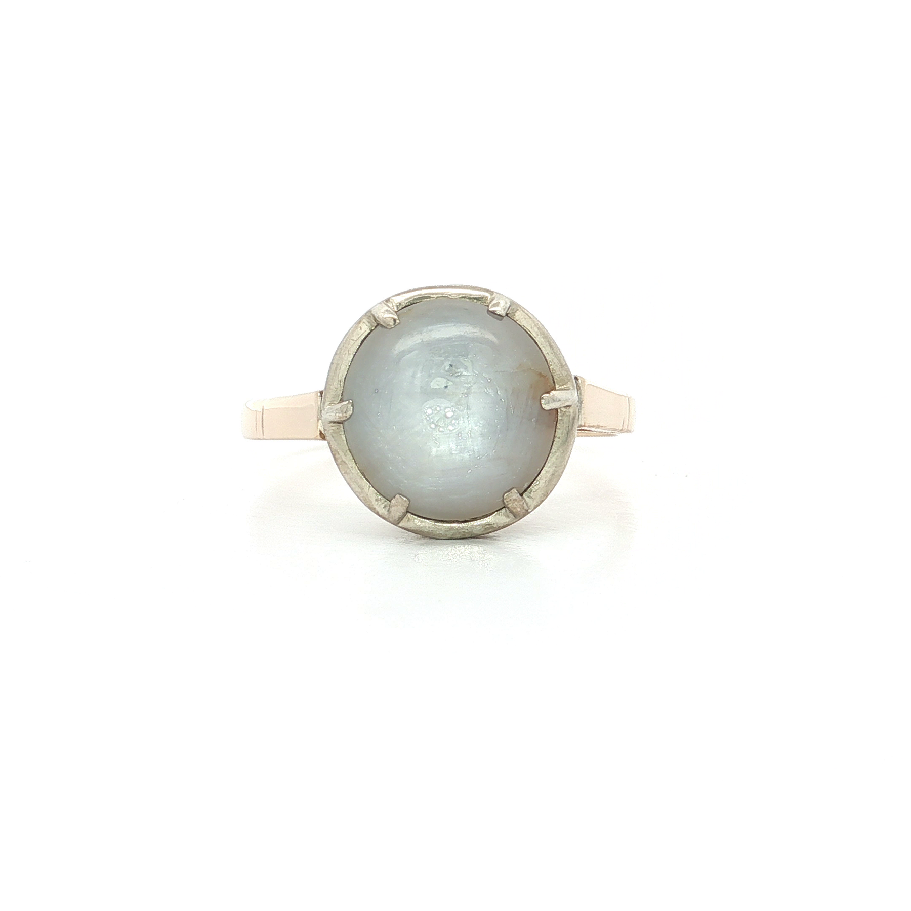 5.00 CT Antique Cabochon Moonstone Set in Sterling Silver and 14kt Yellow Gold Circa 1880