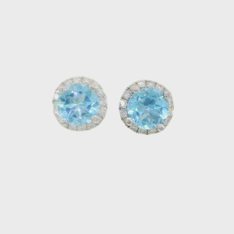 1.35 CTW Natural Blue Tourmaline & Diamond Halo Earrings in 18KT White Gold