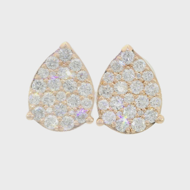 These radiant Diamond teardrop stud earrings feature 2.00 carats of shimmering round brilliant cut Natural Diamonds, beautifully arranged in a pavé setting. The teardrop silhouette enhances the brilliance of each meticulously placed Diamonds—24 diamonds per earring—creating a captivating sparkle. Crafted in 14KT Rose Gold, these earrings exude timeless elegance, making them a refined addition to your jewelry collection.