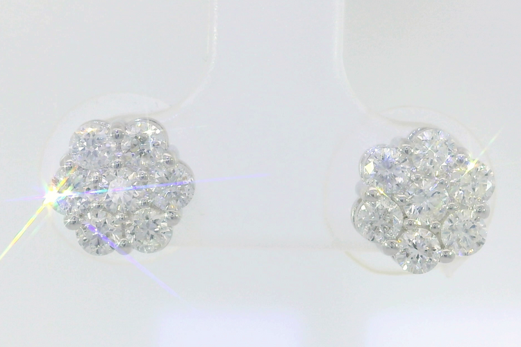 1.04 CTW Natural Diamond Floral Cluster Earrings in 14KT White Gold